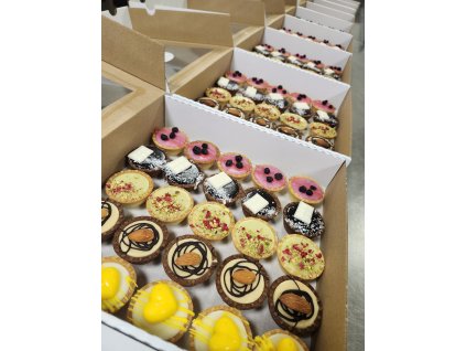 Tartaletkový box vyrobený z mixu plnených tartaletiek v piatich príchutiach. Vhodné ako darček na akúkoľvek príležitosť. Príchute : Pistácia-malina, kokos, karamel,...